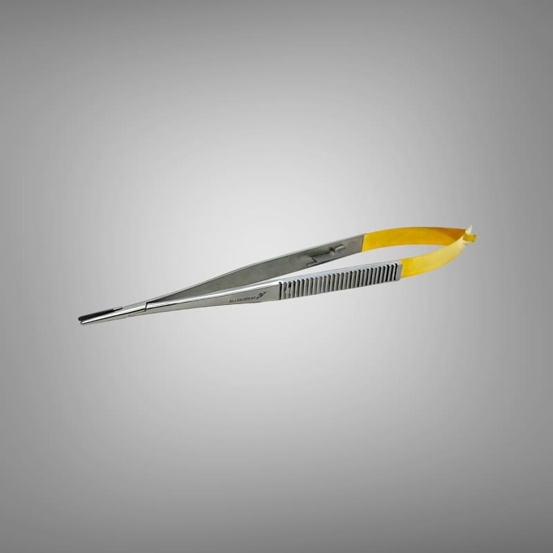 Позолота, що покриває ручки (нітрид титану) додає екстравагантності до вигляду голкотримача, і підвищує антикорозійні і зносостійкі властивості інструменту.