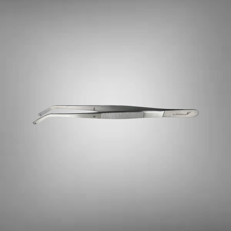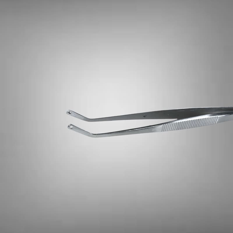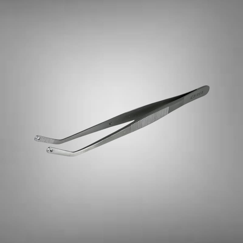 Пінцет для шиття має розширену площу браншів, що дозволяє атравматично утримувати клапоть без потреби надлишкового здавлювання.
